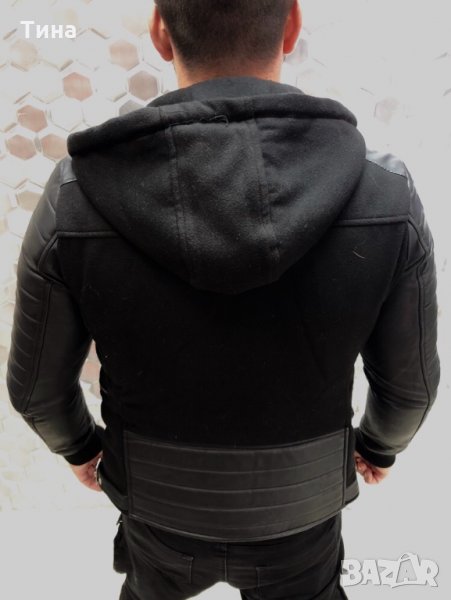 ТОП модел модерно мъжко зимно яке със сваляща се качулка . От вътре якето е с подплата от пресована вата , която топли като грейка , а от вън с мек и плътен полар . Ефектната комбинация с дебела , плътна , зимна еко кожа на ръкавите завършва екстравагантния вид !