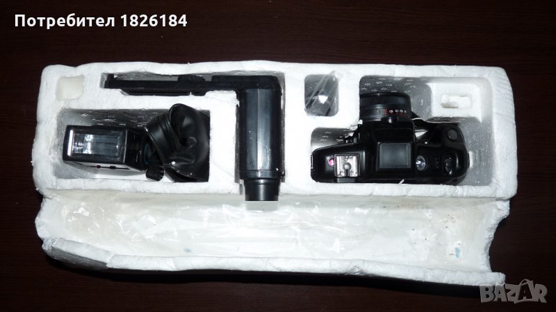 Нейзвестно техническо състояние много запазен оптично със статив и светкавица отделно.