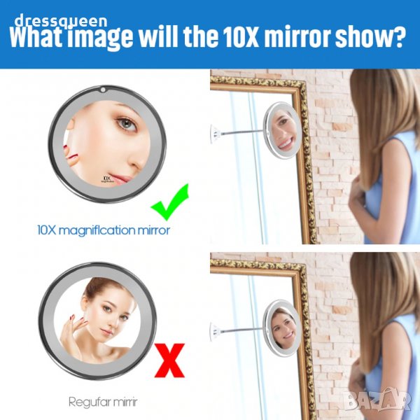 2479 LED Огледало с гъвкаво рамо и увеличение 10х → Обява 30760794