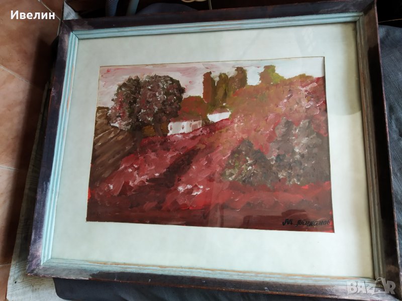 картина-пейзаж,подписана.масло на картонс размери 25см/34см. в поаспарту,дървена рамка със стъкло с размери 40см/48см.