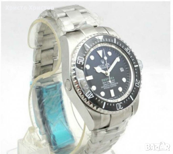 24 месеца гаранция!Луксозен ръчен часовник Rolex DEEPSEA, L316 полиран стоманен корпус,японски механизъм, автоматик, черен циферблат с дата в позиция 3 часа, фосфоресциращи стрелки, маркери, въртящ се PVD ринг, клас ААА, сапфир стъкло и стоманена верижка с оригинално закопчаване.44 мм. Каса.