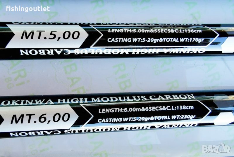 6мт - тегло 230 гр ; транспортна дължина 138 см , водачи 9бр , секции 6 ; акция 5-20 гр ; ЦЕНА - 138 лв