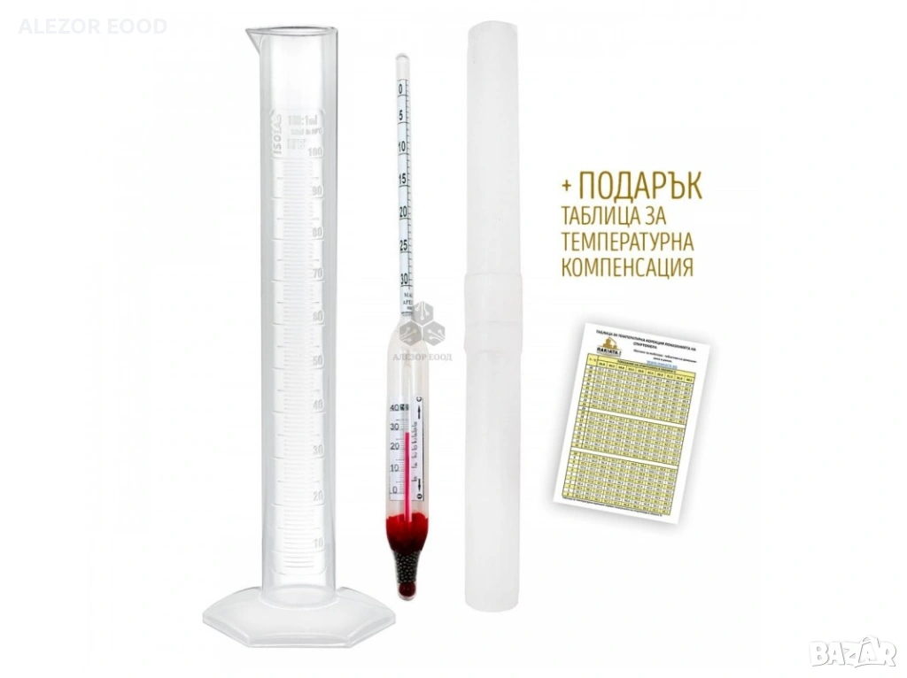 Стъклен захаромер за измерване на захарно съдържание от 0 до 30 % и вграден термометър за температурна корекция. Дължина на захаромера - 220 мм