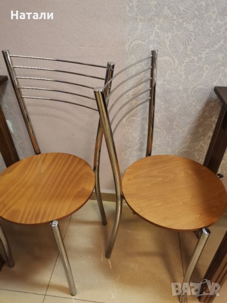 и 4 стола - черешово дърво и метал, с размер диаметър 39см, 45/75 - 60лв / бр
