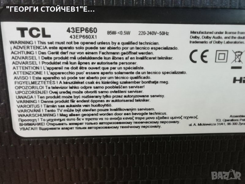 TCL 43EP660 СЪС СЧУПЕН ДИСПЛЕЙ → Обява 30777813