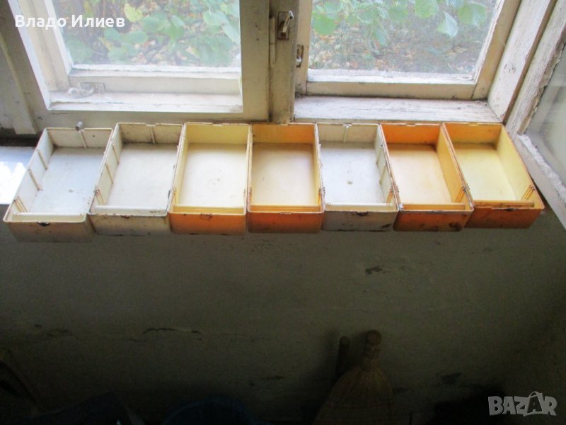 Татко дълги години беше пчелар и предлагам останалото от него...Той много пазеше вещите и инструментите си,така че състоянието на инвентара е добро.Запазен е.На снимките се вижда само част от него.Рамки за пчелни пити:голяма 1 брой,малки 16 броя.Разделители рутови:2 връзки по 50 броя всяка/нови ,с етикети/ плюс 33 броя в насипно състояние.1 пушалка.Миширазделители-25 броя.Хранилки-7 броя жълти и 7 броя сиви големи.На някои части от инвентара не знам наименованията-вижте снимките.2-та пчеларски ножа ,металната клетка за пчели-майки и пчеларската вилица са продадени.