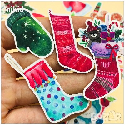 33 бр Коледни малки самозалепващи лепенки стикери украса картонена торта ръчна изработка подарък → Обява 30780310