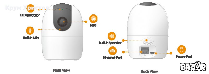 Камерата може да се инсталира на закрито. Лесно е да я конфигурирате, както на различни мобилни устройства, така и на компютри, с най-популярните операционни системи и може да се използва като домашна камера за сигурност.