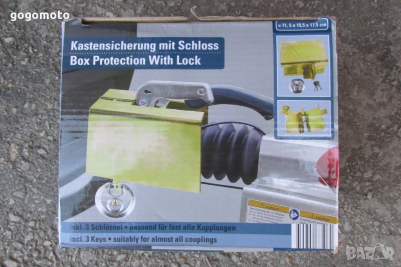 Заключваща кутия за откачени ремаркета, каравана, репатрак, платформа, двуколка, колесар и др. Предпазва от кражба.