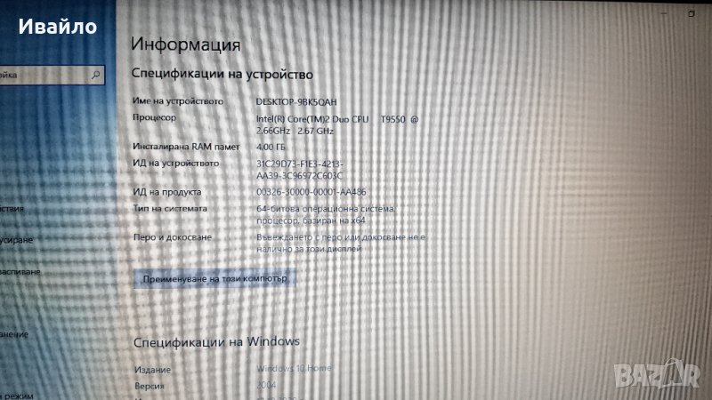 T9550 2X2,66GHZ,4GB RAM,200GB HDD,БАТЕРИЯ 3 ЧАСА,ПЕРФЕКТЕН