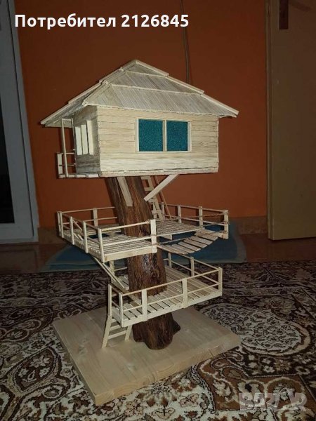 Ръчно изработена къща на дърво. Страхотен подарък за деца и възрастни, подходяща за декорация или игра. Може и да се оцвети с подходящи бойчки за дърво. Височина 50см.ширина 30см.Изработвам всякакви видове къщички по поръчка. Вижте и другите ми обяви.
