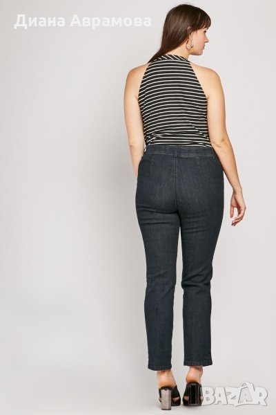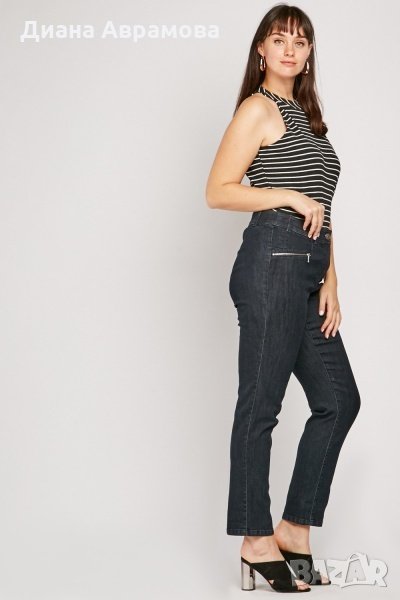 Нови прави дънки индиго от еластичен памучен плат, отворени предни джобове с цип, закопчаване с цип.