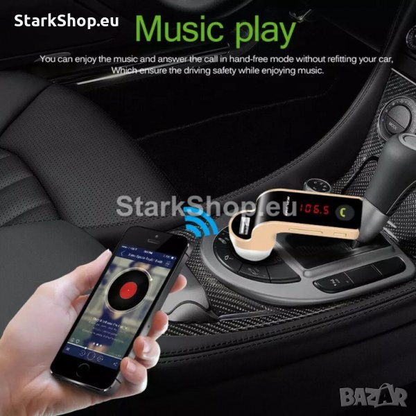 FM Трансмитер G7 работещ с USB флашка и Bluetooth. Нужно е само да включите Bluetooth фукнцията на телефона си и да го сдвоите с трансмитера. Можете да слушате музика в автомобила напълно безжично, както и да приемате разговори чрез функцията „Свободни ръце“.