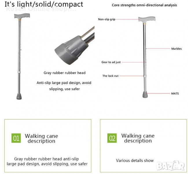 Регулируем алуминиев олекотен бастун 58-96 см.