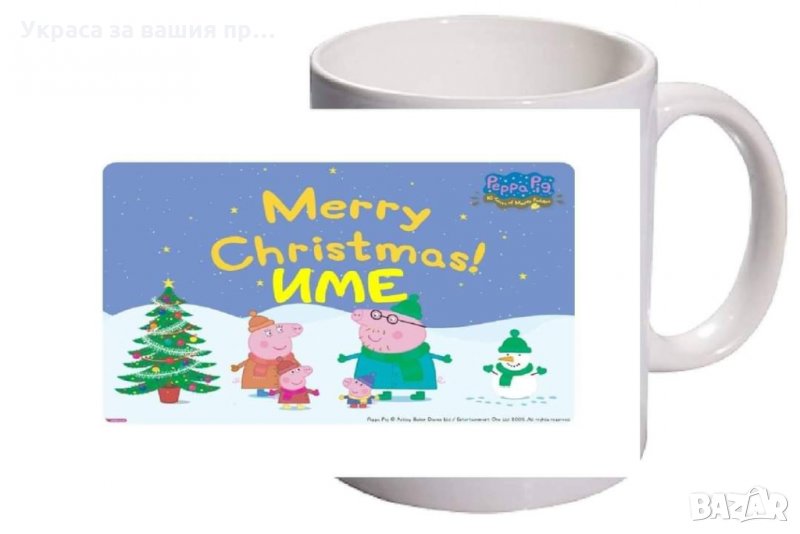 Коледна чаша с Пепа Пиг Peppa Pig прасенцето Пепа и име по поръчка → Обява 30811911