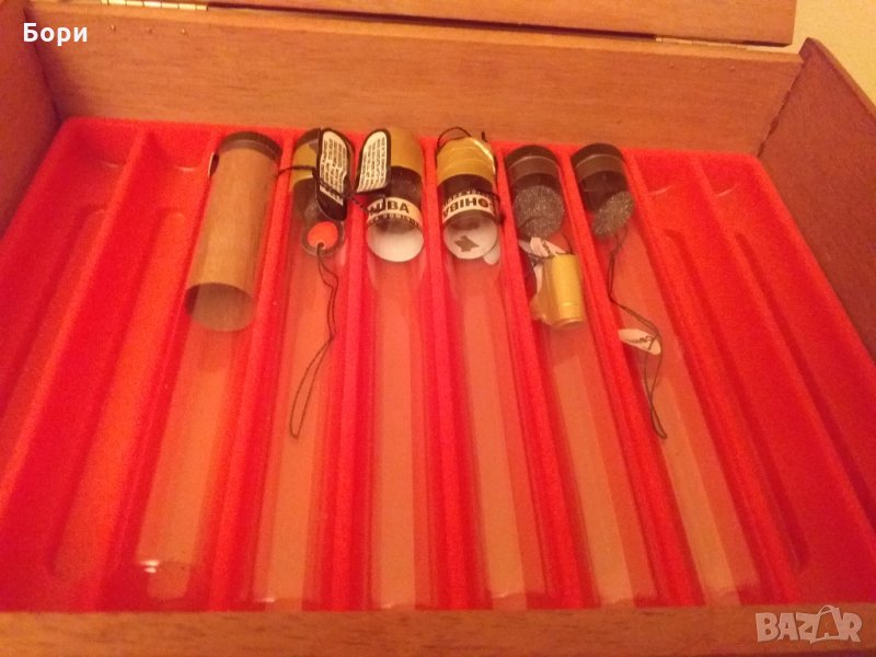 Дървена кутия от пури с 5 броя стъклени опаковки/ампули за пури