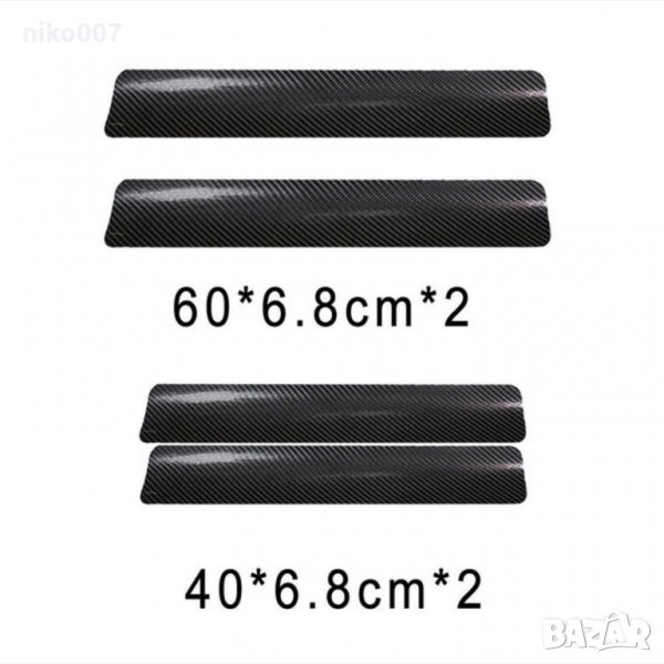 4бр. Карбонови защитни стикери за праг на вратата, 2бр. За предни врати, 2бр. За задни врати.
