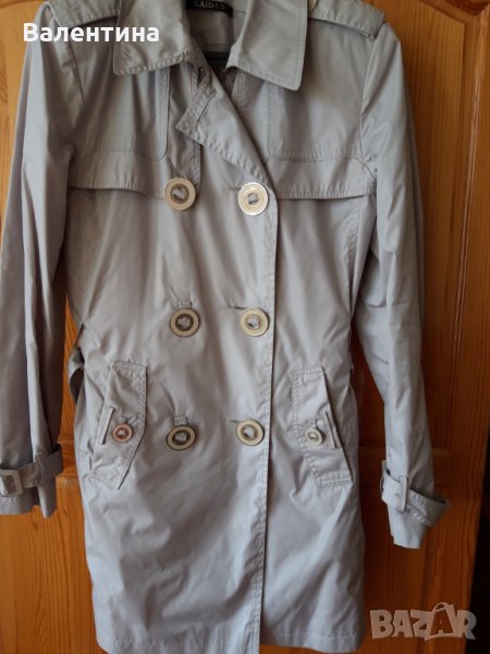 Сив дамски шушляков шлифер с двуредо закопчаване. Много стилен с уникно ефектни копчета. Изключитно запазен, без следи от употреба.