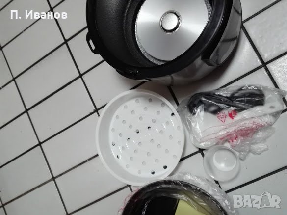 Мултикукъра е нов, не е използван. Има много възможности, може да се готви, да се пече хляб и сладкиши, да се правят ястия на пара и какво ли още не. Много е удобен и практичен, а също и икономичен - пести продукти, ток и време. Може да се настрои да се включи в определен момент така че когато човек се прибере яденето да е готово и топло.