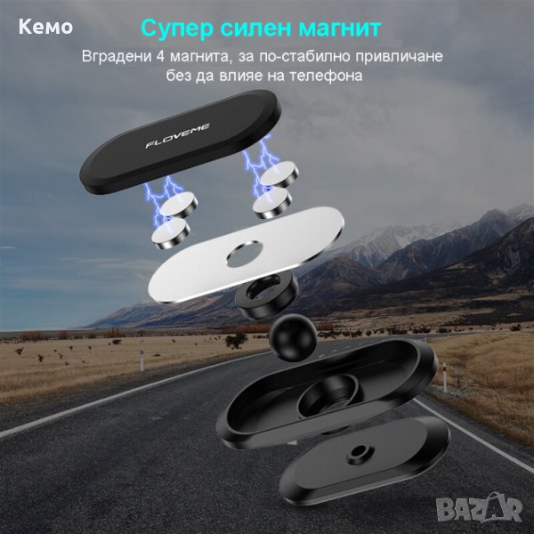 Качествена магнитна мини стойка – компактна, изключително стабилна и удобна стойка с интензивна сила на привличане, с която много лесно ще закрепите своя телефон, таблет или навигация.
