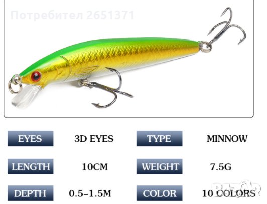 воблери, изкуствена примамка - 7,5 гр., 10 см., гази от 0,5 до 1,5 метра