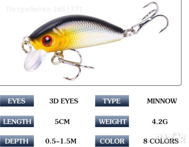воблери, изкуствена примамка - 5 см., 4,2 гр., щука, сулка, кефал, река, снимка 1 - Стръв и захранки - 30831502 воблери, изкуствена примамка - 5 см., 4,2 гр., щука, сулка, кефал, река, снимка 2 - Стръв и захранки - 30831502 воблери, изкуствена примамка - 5 см., 4,2 гр., щука, сулка, кефал, река, снимка 3 - Стръв и захранки - 30831502 воблери, изкуствена примамка - 5 см., 4,2 гр., щука, сулка, кефал, река, снимка 4 - Стръв и захранки - 30831502 воблери, изкуствена примамка - 5 см., 4,2 гр., щука, сулка, кефал, река, снимка 5 - Стръв и захранки - 30831502 воблери, изкуствена примамка - 5 см., 4,2 гр., щука, сулка, кефал, река, снимка 6 - Стръв и захранки - 30831502 1/6