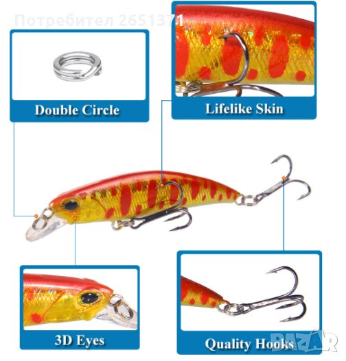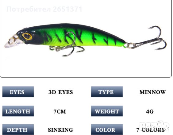 воблери, изкуствена примамка с 3D очи - 4гр., 7 см., потъва