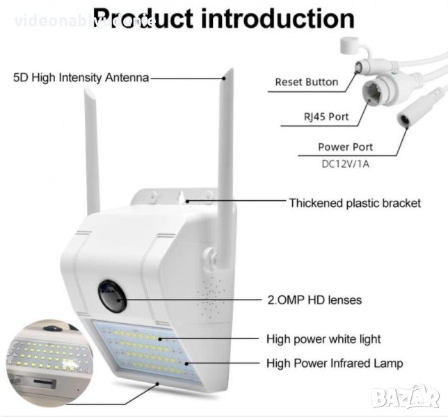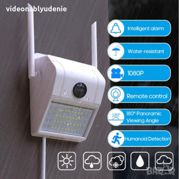Безжична камера за външен монтаж с 2 MPх CMOS сензор, висока FULL HD резолюция 1080P и фиксиран F2.3-2.53mm 180 градуса панорамен ъгъл на виждане. С вградения PIR сензор за движение с широкоъгълен IR обхват, IP66 влагозащитен дизайн за работа в различни метеорологични условия, тази охранителна камера е идеалния „пазач“ за всеки дом и бизнес.