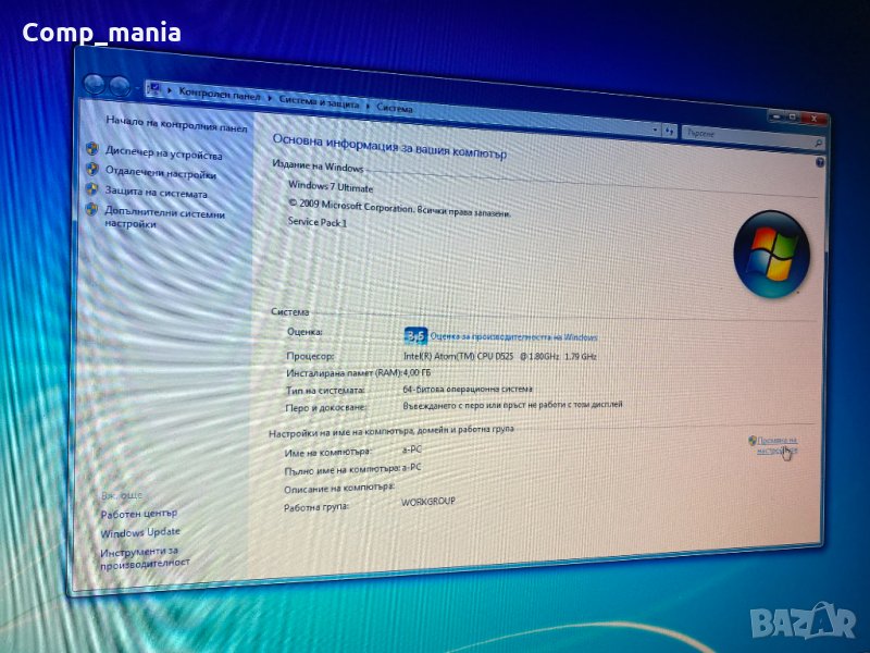 Процесор: AMD Atom D525 (4x1.80GHz)