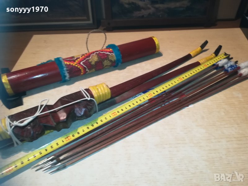 с дърворезба и ръчно декориран-голям с колчан и стрели за колекция декор или ползване-60см разглобен и нов-идеален подарък-от днес 28.02.22г пращаме със спиди или еконт с преглед и тест след превод на капаро за куриерската услуга поради зачестили некоректни потребители-поръчки само тук в саита! по телефона и със смс не! краини цени! бартери не правиме! всеки ден нови неща-още 2-3 наши обяви тук