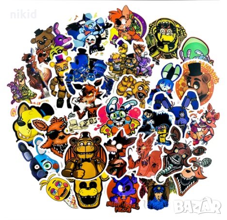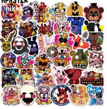 50 бр Five Nights at Freddy's Freddy Фреди самозалепващи лепенки стикери за украса картонена торта → Обява 30837514