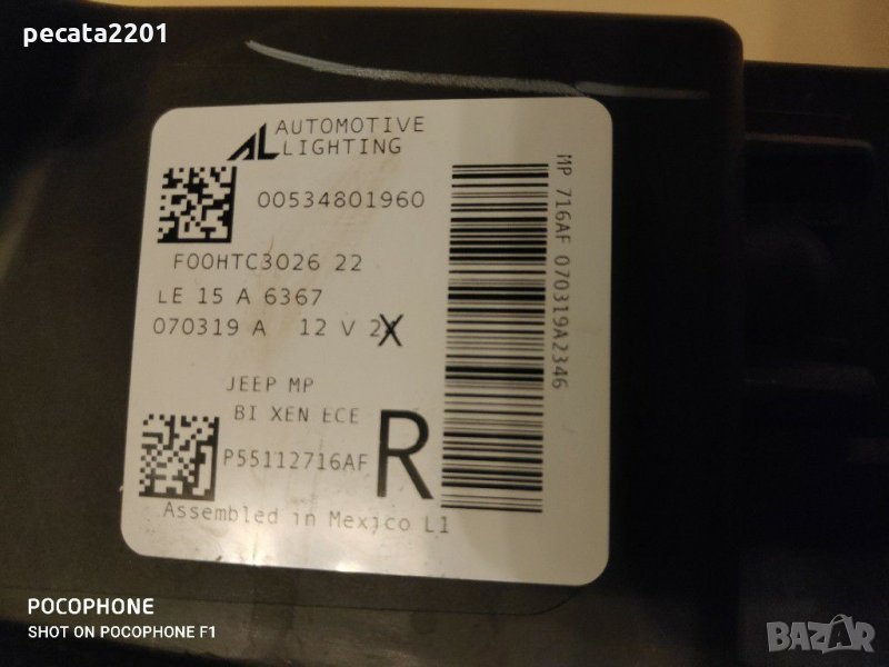 Продавам - оригинален десен Led фар за Джип Компас (Jeep Compass) 2019 г. Фара е за ремонт или части - всички крачета за закрепване са счупени, като горното е счупено заедно с парче от корпуса, стъклото отпред е здраво, има няколко драскотини, които с полиране ще изчезнат. Всичко друго на фара може да се ползва. Оригиналния номер е 00534801960. Цена - 219 лв.