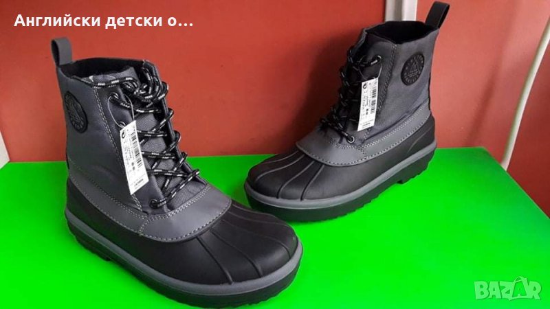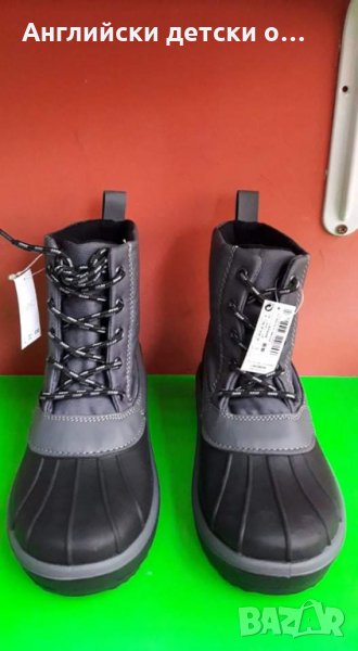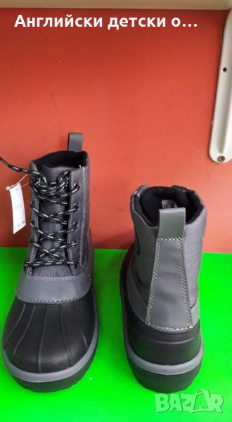 Съставени от непромокаема материя, отпред са гумирани, отвътре са с поларена подплата, езика е зашит донякъде ,за да не влиза сняг,обуват се лесно,имат връзки за стягане,стелката е с мемори пяна, внос от Англия марка NEXT.