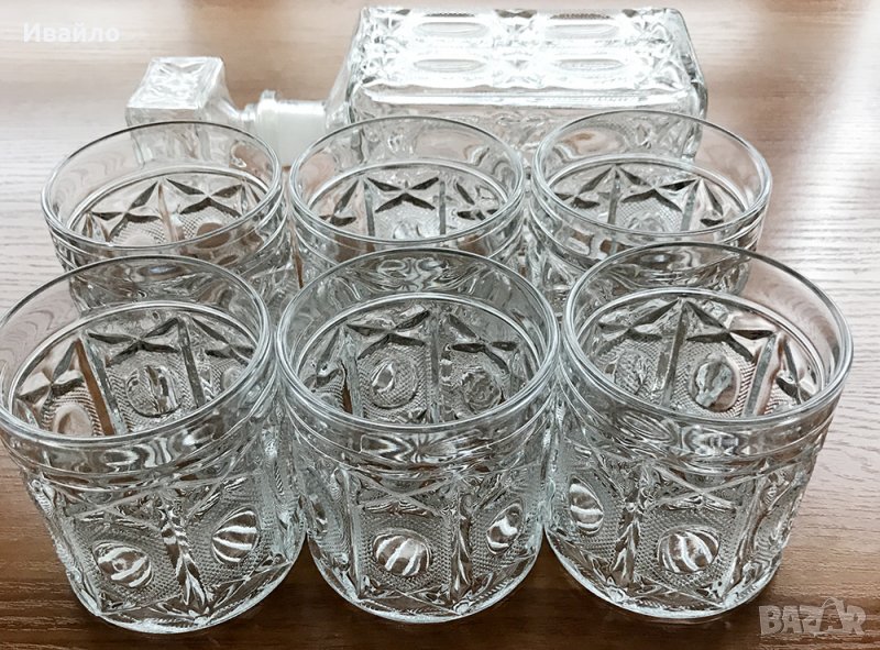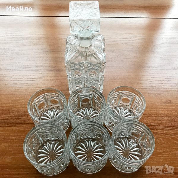 Комплектът съдържа 1 бр. гарафа/бутилка за уиски (ликьор, бренди, коняк, ракия и др.) с тапа и 6 бр. чаши