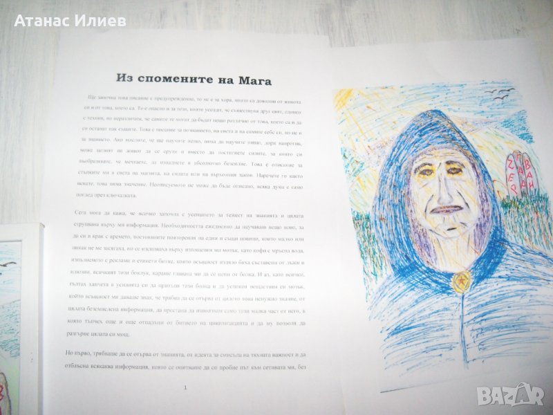 Оригинална рамкирана илюстрация към разказа "Из спомените на Мага". Илюстрацията е изпълнена с тънкописци на формат А4 и рамкирана в рамка с размери 23х32 см. Заедно с картината получавате и разказа принтиран . Автор на илюстрациите и на разказа е Атанас Илиев с псевдоним Чер Гарван. Повече от неговите разкази можете да прочетете на сайта му "Гарванови истории".