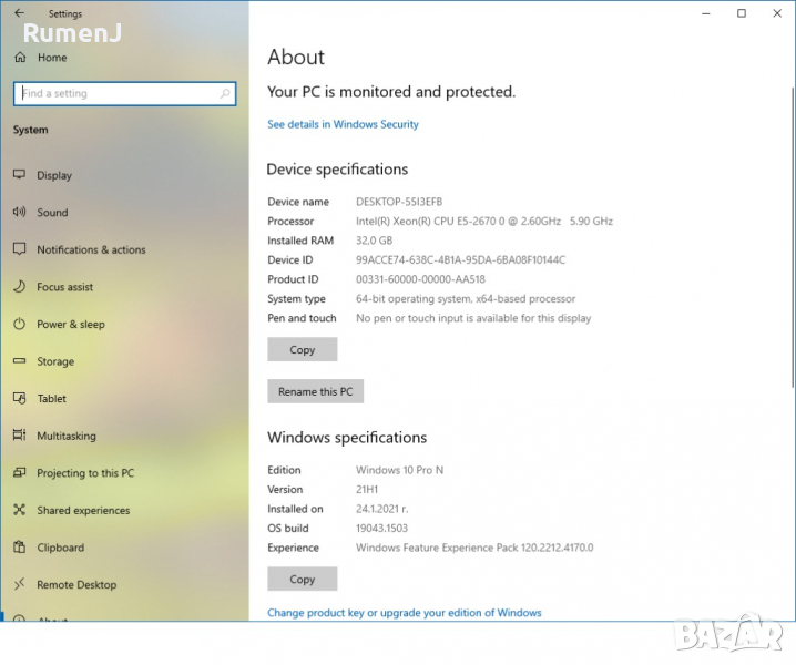 Инсталиран Windows10 64 bit последна версия и основни програми за начална употреба.