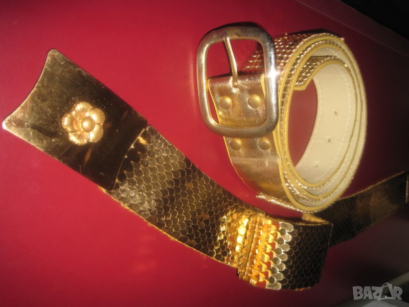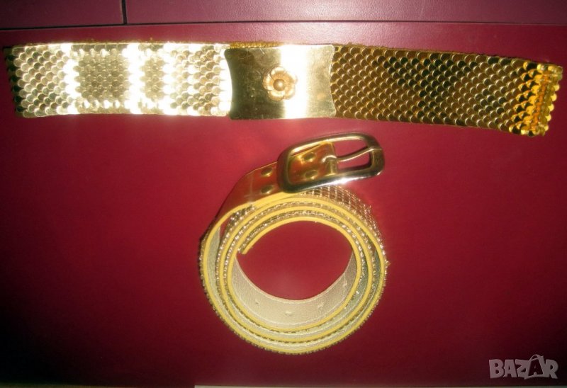Два модела красиви, блестящи, златисти колани с гъвкава метална повърхност. Металните колани са много удобни заради ширината си и в същото време придават грациозен вид с изчистената си линия.