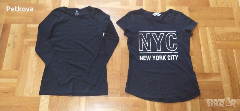 Тениските са по 5лв, Производство Виетнам е оранжевата,внос от Америка. Тениската повече отговаря на 164р-р. Размери: дължина 55см, ширина в раменете 36см, ширина под мишници 44см. Черната е на Бершка, р-р 26(МЕХ). На послед.снимка черната тениска е на N&M. Разгледайте обявите ми с дънки и тениски.
