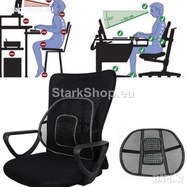 Анатомична облегалка за кръст при работа на стол или автомобил с масажор.