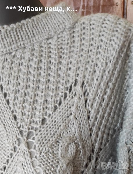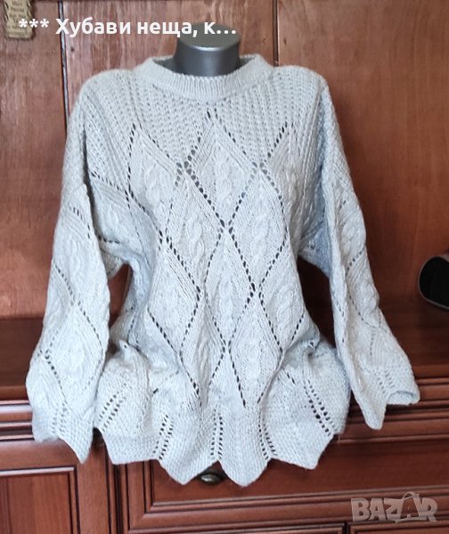 Уникална блуза, ръчно плетиво Handmade, преждата е топла и мека. Дори на снимка се вижда колко е красива. Цветът е сребърно сив. Стои мн. елегантно и може да прикрие някои несъвършенства на фигурата. Плетена е по поръчка за чужбина, но поради ковита не бе изпратена