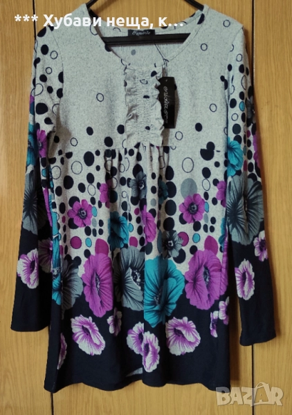 Нова мохерната блуза е много красива и стои перфектно. Интересно дизайнерско решение за платка с къдрички на предницата. Принтът е илюстриран с красиви цветя. Различна дреха, удобна ,красива, модерна. В перфектно състояние е, нова с етикет. Материята е мека, галеща, топла. Рядко съм попадала на такава. Много я харесах и я купих я онлайн. За съжаление се оказа, че не ми е по мярка и с голямо съжаление я предлагам тук.