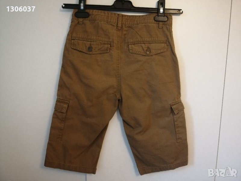 Носени броени пъти. Памучен плат в приятен цвят. Тик-так закопчаване, регулация в кръста, странични джобове с капаци и копче. При запитване ще дам размери в см, ако има нужда и още снимки.