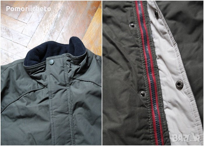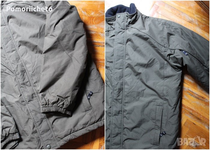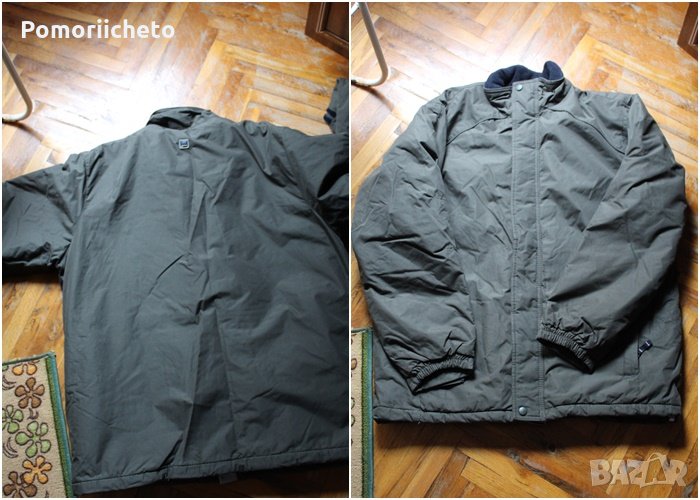 Висококачествена мъжка горна дреха. Подходяща за носене при много ниски температури, предпазва от вятър и дъжд и топли. Добре подплатено. С регулируеми велкро ленти на ръкавите за плътно затваряне и предотвратяване проникването на вятър. Закопчава се с цип и копчета. С много допълнителни джобове с цип, както и скрити вътрешни такива. Материята е непромокаема, а пълнежът не се спластява при пране. Състоянието е отлично, няма забележки.