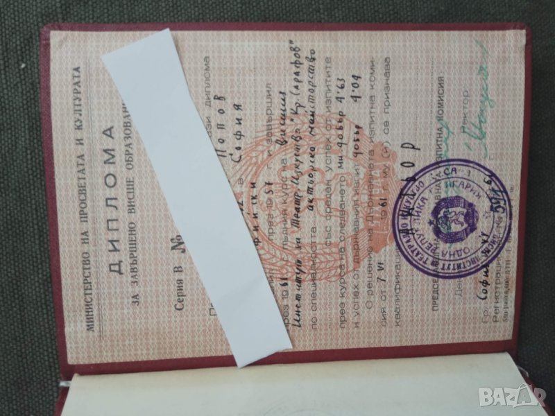 Диплома на актьор НРБ ВИТИЗ