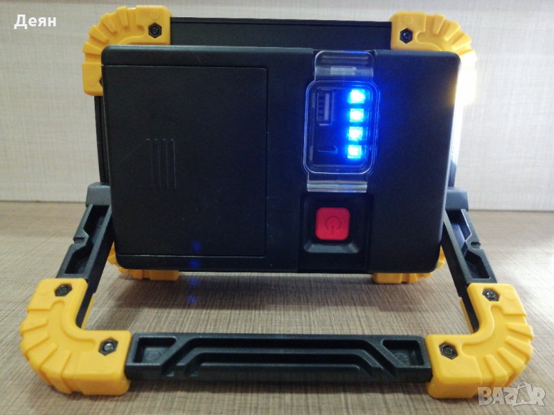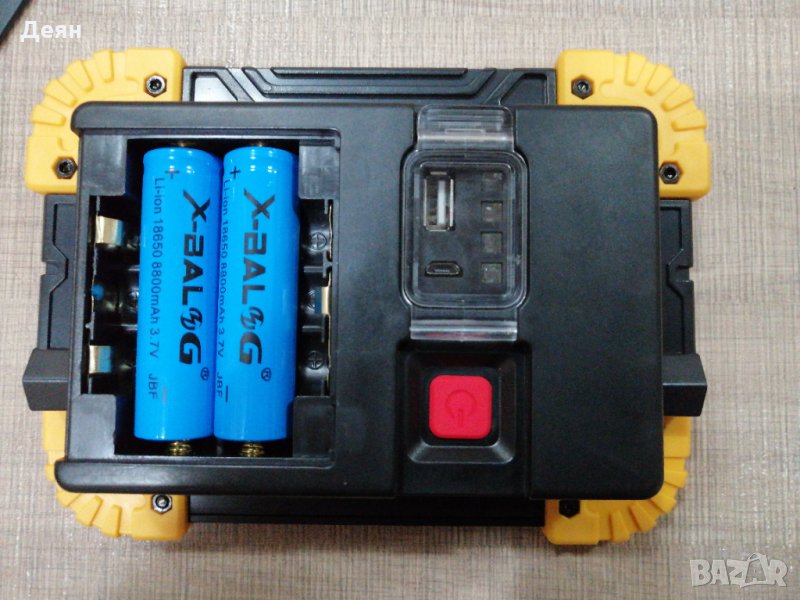 Супер лед лампа 20W за автомобила, в работилница или къмпинг. Четири режима на светне. С две Li-ion акум. батерии. С възможност за поставяне на доп. батерии 3хАА.Зареждането става с USB.