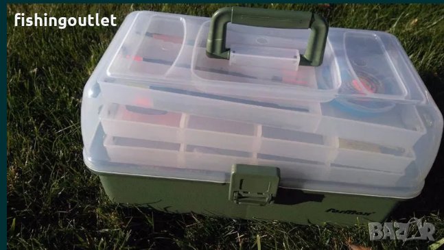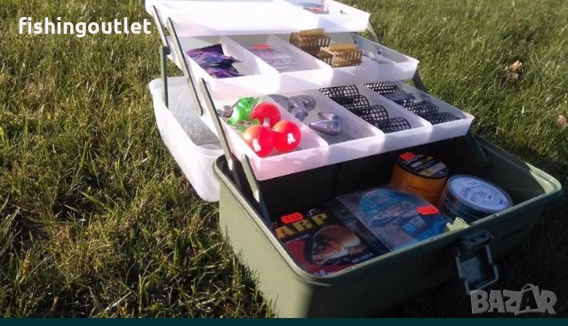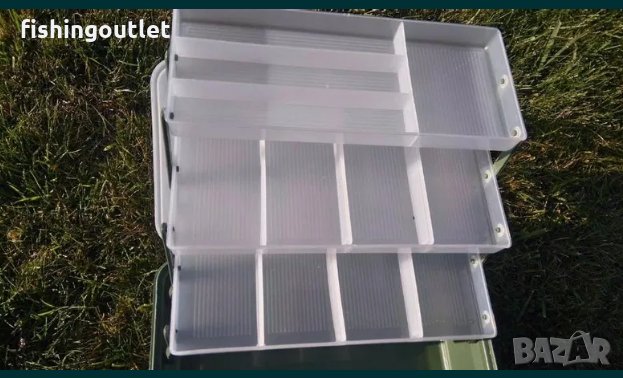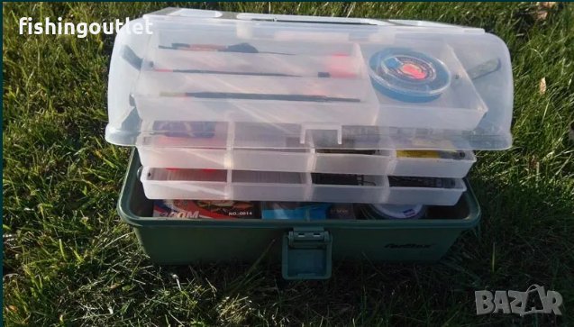 пластмасов куфар, на три нива с напречни прегради за различни аксесоари.