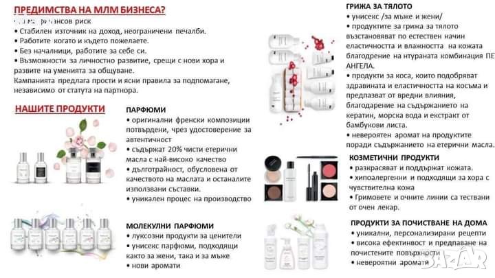 👌 Почистващите препарати съдържат френски ароматни масла, парфюмите - 20% есенция, което ги поставя в категория Perfume. Декоративната козметика е натурална и подходяща и за чувствителна кожа!