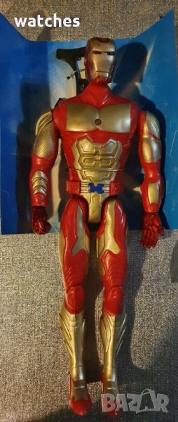 Фигура 29 см - Железният човек (Iron Man) - музикална. Материал пластмаса, с подвижни ръце и крака. При натискане на бутон свети. Подходящ за деца над 3 години.