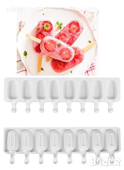 8 малки ескимо сладолед Popsicle Попсикъл молд силиконова форма калъп за направа на десерти → Обява 30890631