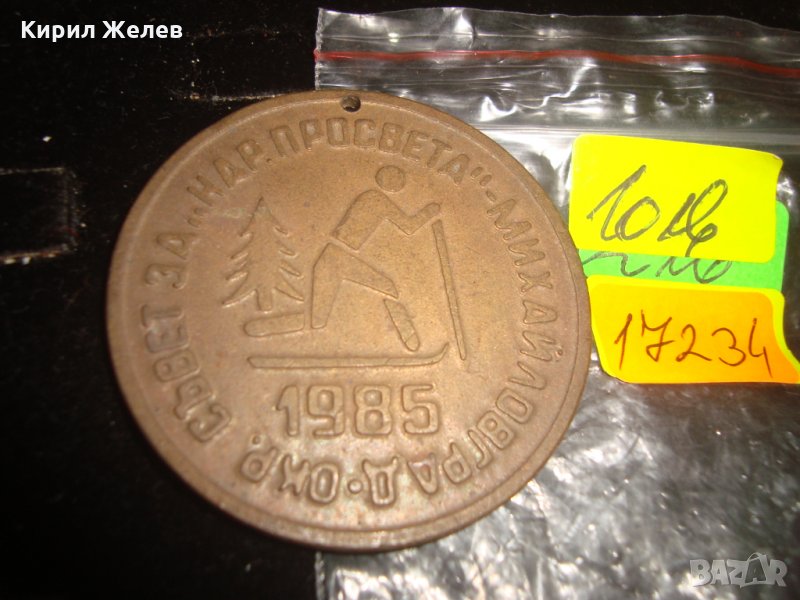 ОКР. СЪВЕТ за НАРОДНА ПРОСВЕТА МИХАЙЛОВГРАД 1985г. ПЛАКЕТ МЕДАЛ 17234